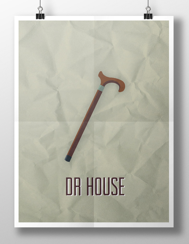 Dr. House’s cane, MacGyver’s Swiss knife, The Avengers bowler hat… Browse this collection of 14 minimalist posters from cult TV series.